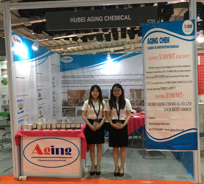 眾所周知,本年度印度海關(guān)開(kāi)始對SNF產(chǎn)品征收反傾銷(xiāo)稅,對中國供貨商來(lái)說(shuō),出口業(yè)務(wù)變得異常艱難,在這種嚴峻的形勢下,艾金化工堅持參加印度展會(huì )。 展會(huì )于2018年5月24日到5月26日在印度國際會(huì )展中心隆重舉行,本屆混凝土展成功吸引了來(lái)自世界各地的200多家展商,專(zhuān)業(yè)買(mǎi)家近一萬(wàn)多人,是印度地區致力于混凝土建筑領(lǐng)域的專(zhuān)業(yè)大展。